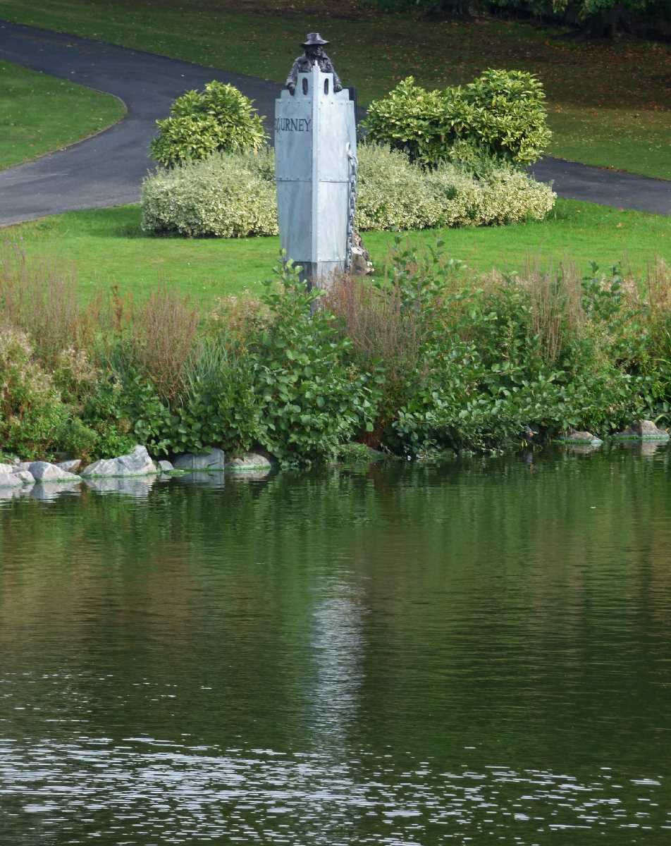 A 2017 steel and bronze sculpture by Luke Perry at Handsworth Park called SS Journey. Was part of the Handsworth Arts Trail. The figure based on local man Hector Pinkney MBE.